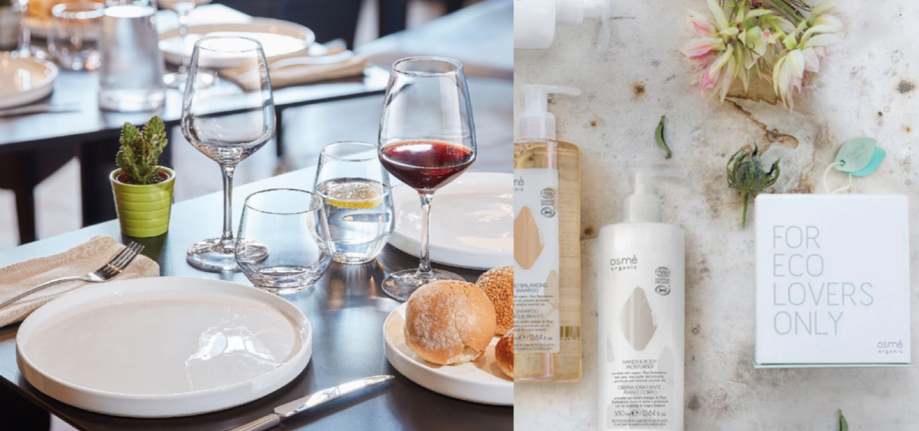 Art de la table : vaisselle, nappage, serviettes, réutilisable et usage unique. Matériel de cuisine : coutellerie, cuisson, stockage, vente à emporter, etc. Accueil hôtelier : équipement des chambres, lavage et soins, tapis, etc.