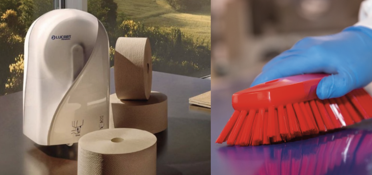 Equipements : matériel de balayage, brosserie, chariots, tapis, signalétique, etc.