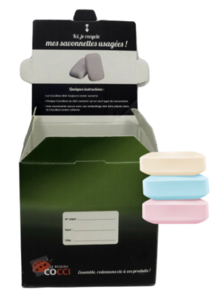 Avec la fondation Sapocycle, nous avons lancé le projet de collecte de ces savonnettes qui, en plus de sa dimension environnementale, apporte une dimension sociale à la fois dans le procédé de valorisation réalisé par un ESAT que dans sa finalité.