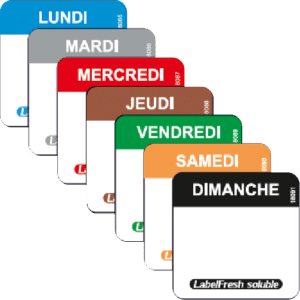 Distributeur Starterkit Easy à étiquettes solubles Labelfresh. Vendu avec les étiquettes des 7 jours de la semaine : lundi, mardi, mercredi, jeudi, vendredi, samedi et dimanche (7 x 500 étiquettes).