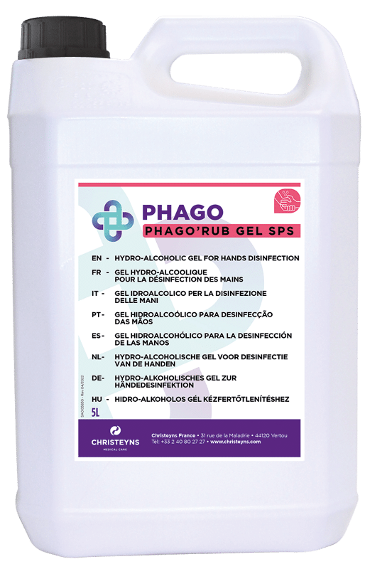 PHAGO GEL SPS est destiné à la désinfection hygiénique chirurgicale desmains par friction : en alternative aux lavages simple ou hygiénique desmains, en labsence de point deau, lors de contacts en série, avant toutgeste aseptique...